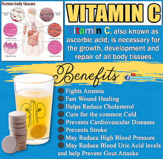 ⬤ Vitamin C is needed for the growth and repair of tissues in all parts of your body.